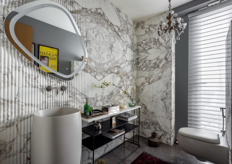A45 transcends the conventional notion of a luxury home, evolving into a personalised sanctuary that authentically reflects its owner’s identity and his penchant for art. The motley of elements, such as the iconic light fixtures and the white marble and wooden flooring, set up a harmonious composition. The residence’s scheme produces a prismatic box that blurs the boundary between the indoors and the outdoors, seamlessly integrating design, art, and environment to embody the true essence of luxury contemporary living.