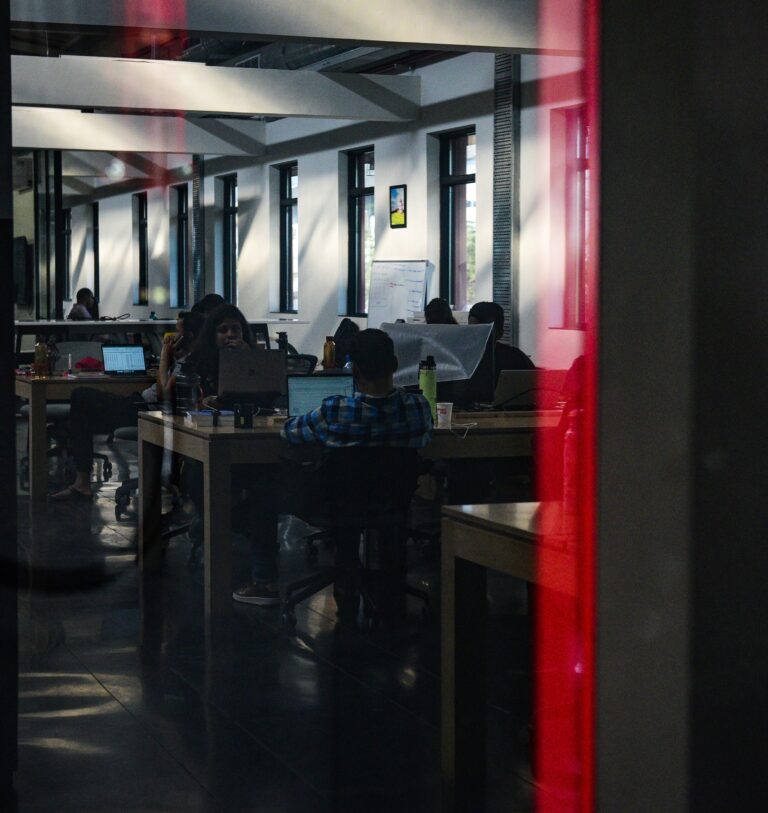 The building was revitalized by reinforcing the columns with steel jacketing and replacing the old trusses and roof. The outdated asbestos roof has been revamped with a modern pre-insulated profile sheet, accompanied by a central skylight installed along its ridge. This upgrade floods the interior with natural daylight, redefining the atmosphere within. Further enhancements include the incorporation of light shelves at lintel level and the refurbishment of windows with high-performance insulating glass, amplifying the overall scheme and setting up well-lit environments conducive to productivity. Through this adaptive reuse approach, the workspace was made operable in two months, optimizing construction time and minimizing the project’s carbon footprint.