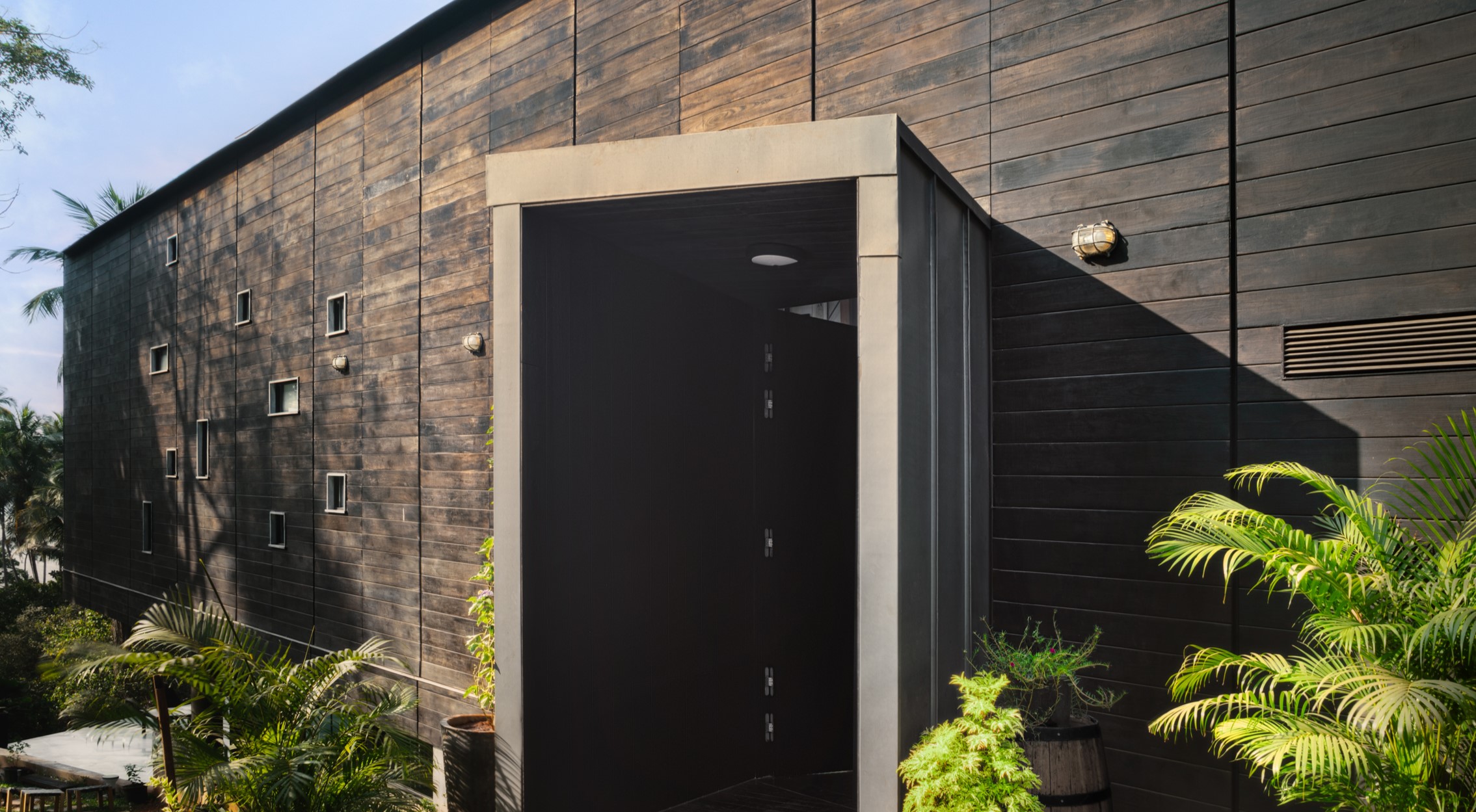 Precision-engineered post anchors secured the glulam column-beam frame to a concrete foundation, ensuring a robust, efficient, and visually striking structure. The home’s foundation was also designed to work with the natural slope of the land, minimising its impact on the coastal site while retaining structural stability—especially important in Goa’s tropical climate.