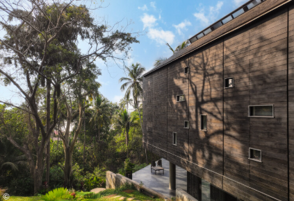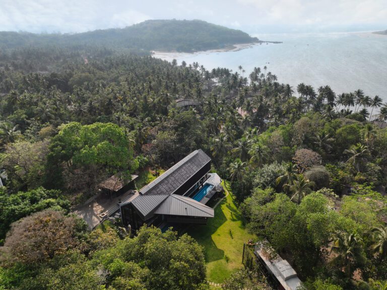Nestled between Goa’s tropical greenery and the sea, the house is a tranquil sanctuary for the client to retreat within and recharge his creative energies. It not only sets a precedent for sustainable residential design in India but also nurtures the owner’s diverse pursuits, merging unconventional materials with cutting-edge technology to form a minimal and progressive residence.